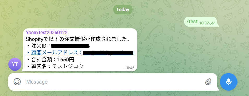 Shopifyで注文情報が作成されたら、Telegramで通知する