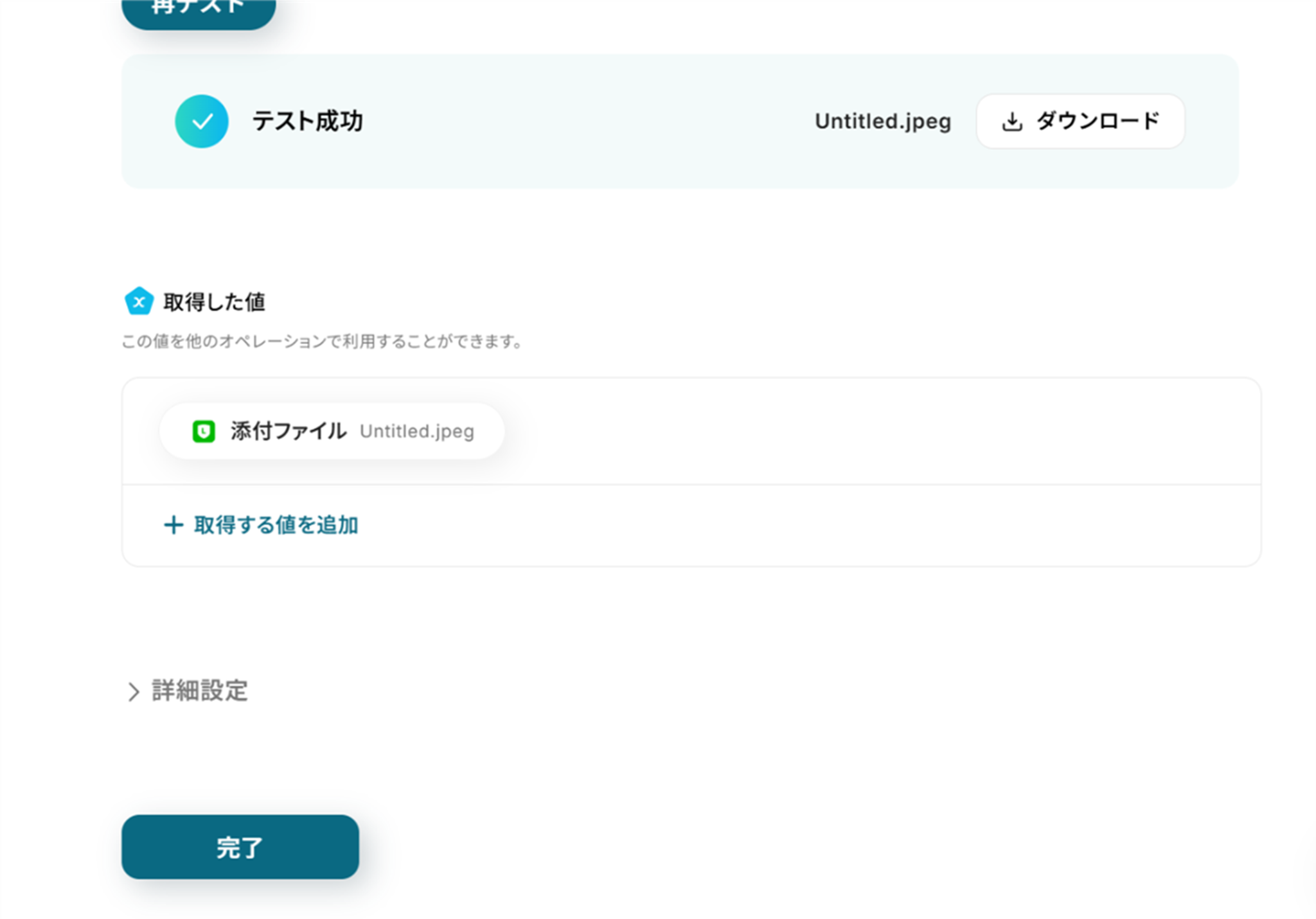 テストに成功すると、ダウンロードから添付データを確認できます。