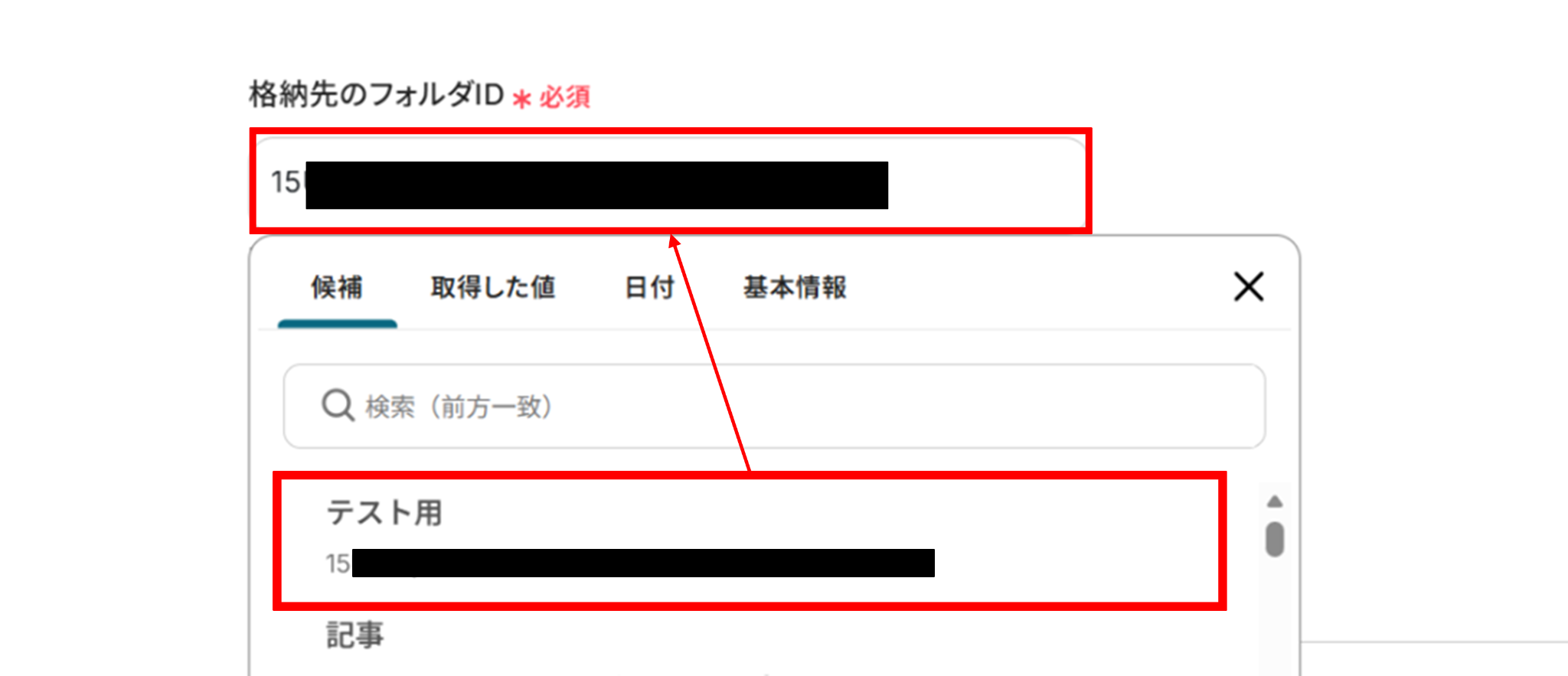 - Google Driveの「ファイルをアップロードする」アクションでは、格納先のフォルダIDを任意で設定してください。