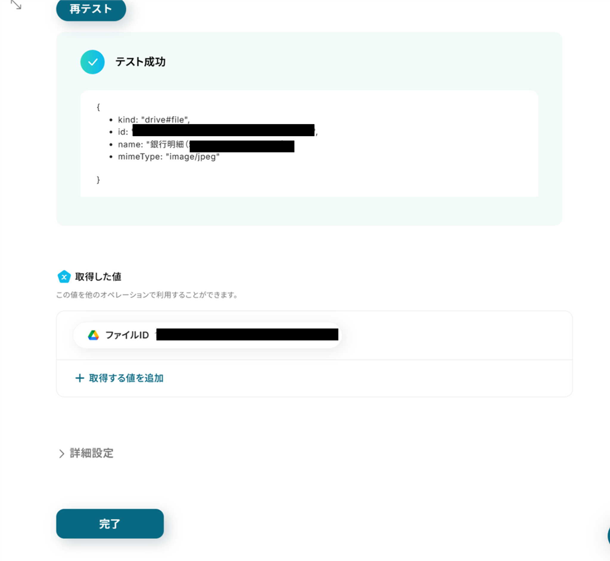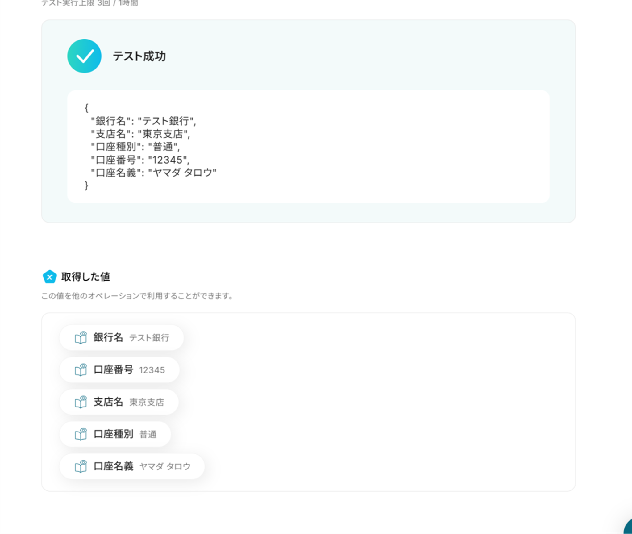 テストに成功すると取得した値にOCRで抽出した情報が反映されます。