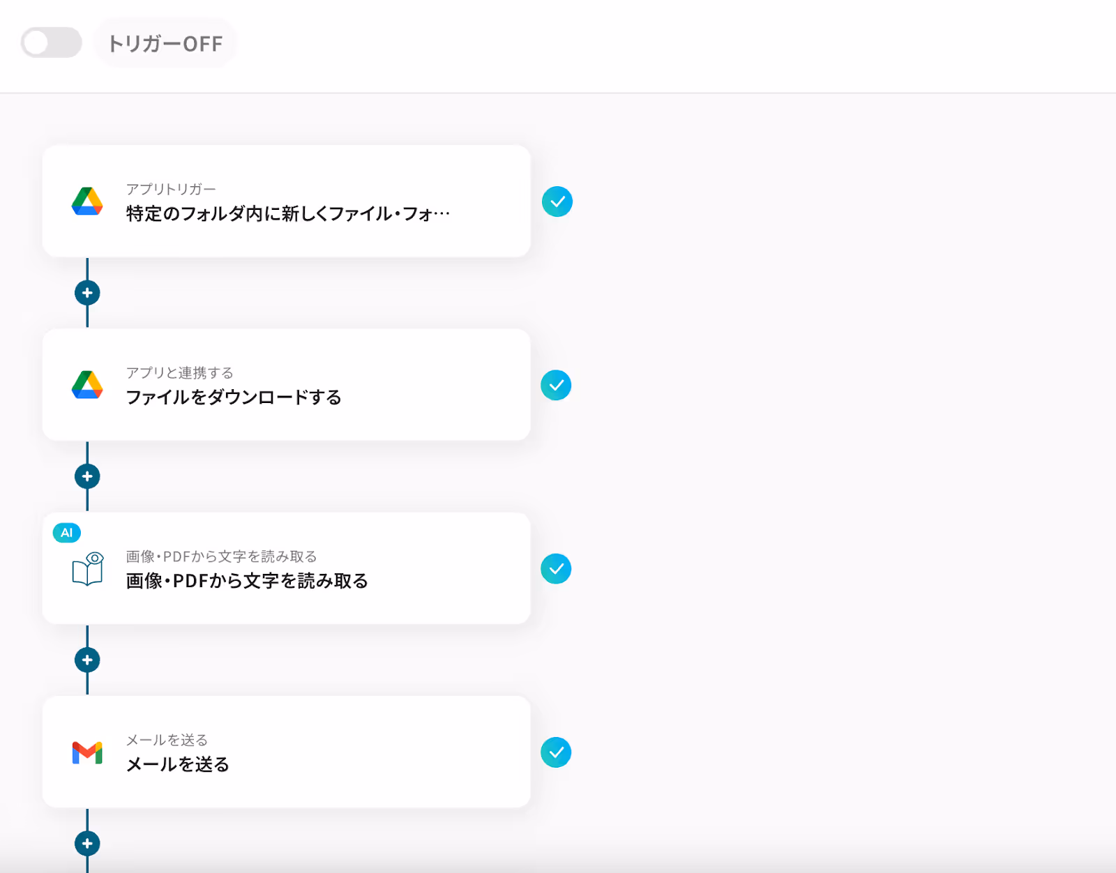 以下がGoogle Driveをトリガーに設定したテンプレート例です。
