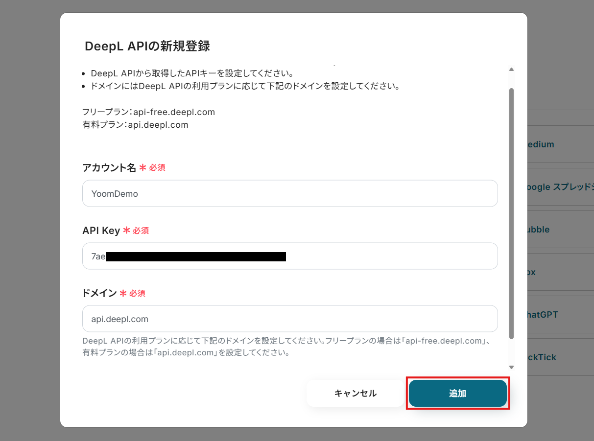 ・DeepL、ChatGPTのそれぞれとYoomを連携してください。