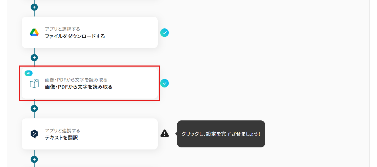 「Google DriveにアップロードされたファイルをOCRして、DeepLで翻訳後、Gmailでメールを送信する」ワークフローを利用すると、ファイルのOCRと翻訳が自動で行われます。