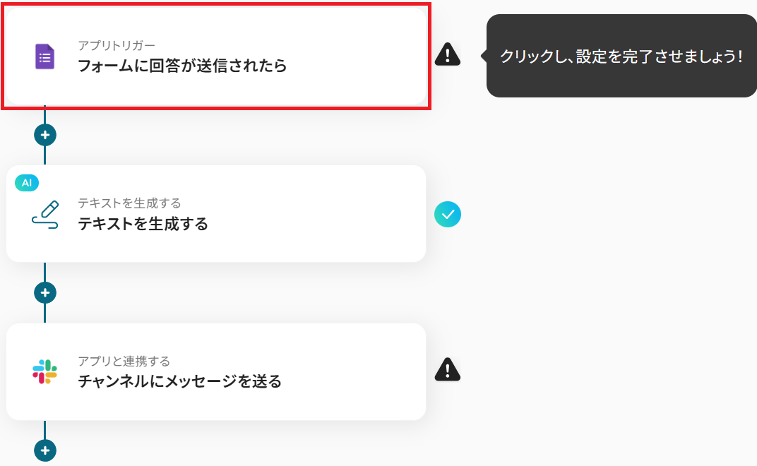 それではここから代表的な例として、Googleフォームに新しい回答が送信された際にその内容をAIが解析し、インサイドセールス用のトークスクリプトを作成してSlackに通知するフローを解説していきます!
