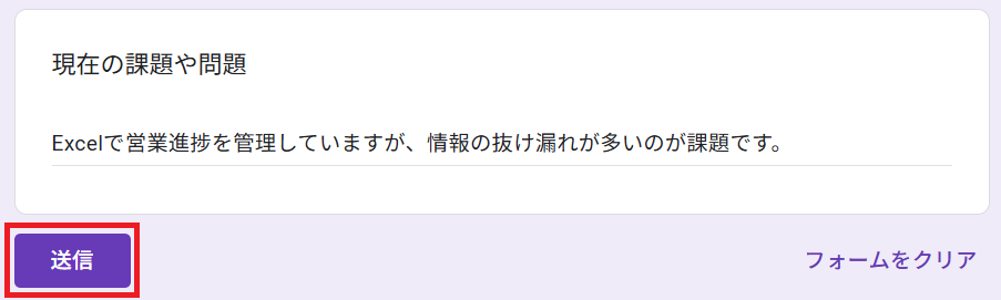 もしGoogleフォームで受け取った回答をAIが自動で分析し、顧客のニーズや関心事を把握した上で、最適なトークスクリプトの提案やアプローチ戦略の示唆を得られる仕組みがあればこれらの悩みから解放され、インサイドセールスチームはより戦略的かつ効率的な活動に注力できるようになります!