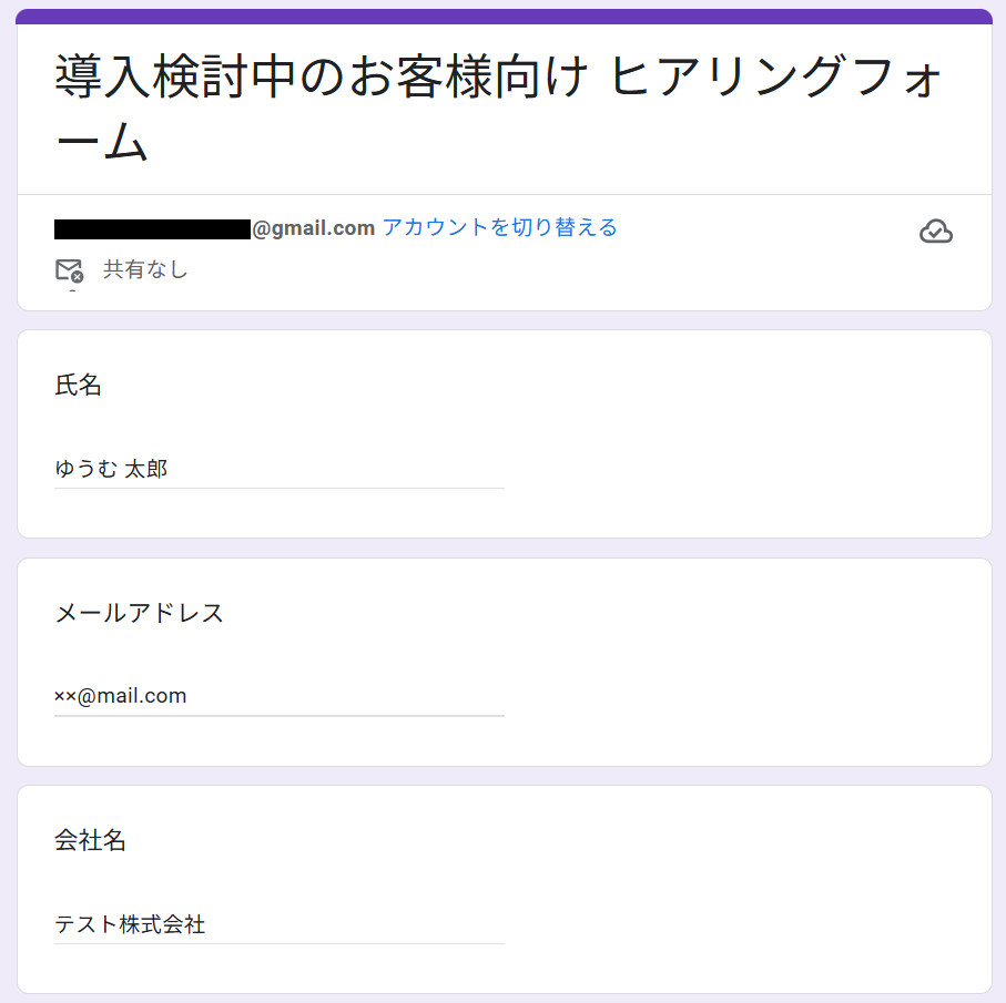 まず、顧客用フォームを作成して回答したものを用意しましょう。