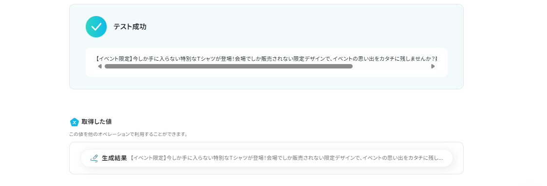 次に、「テキストを生成する 」という項目を設定していきましょう!