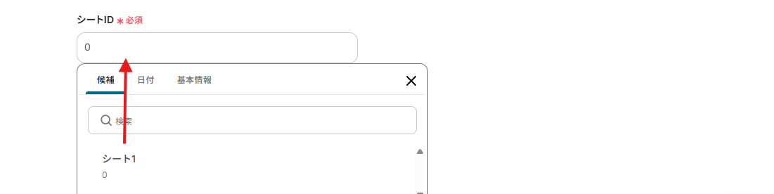 枠内をクリックすると候補が表示されるので、 事前準備で用意したスプレッドシートIDおよびシートIDを任意で選択してください。