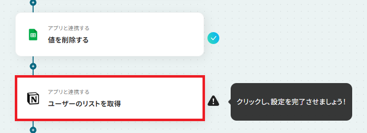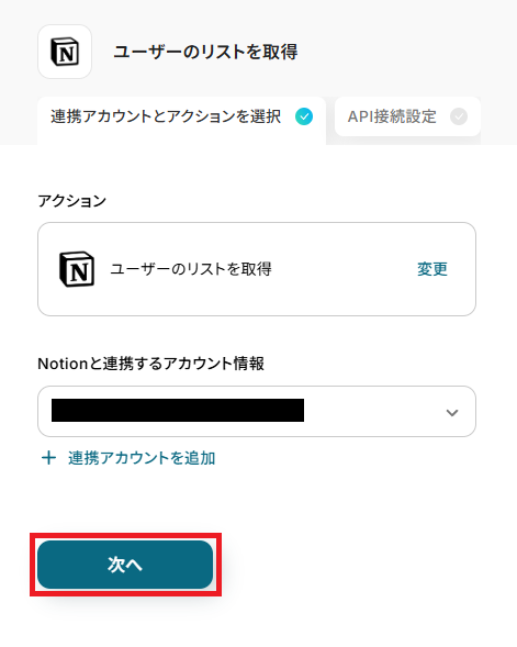 ステップ5:Notionのユーザーリストを取得する設定 「ユーザーのリストを取得」を、クリックしてください。