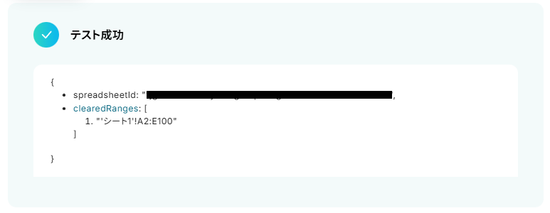ステップ4:Google スプレッドシートの値を削除する設定 既存で入力してある値を削除する設定を行います。 もし、ユーザーリストが無い場合は、Google スプレッドシートで作成しておきましょう。 作成する内容は、架空の情報(「テストID」や「テスト名」など)でOKです。