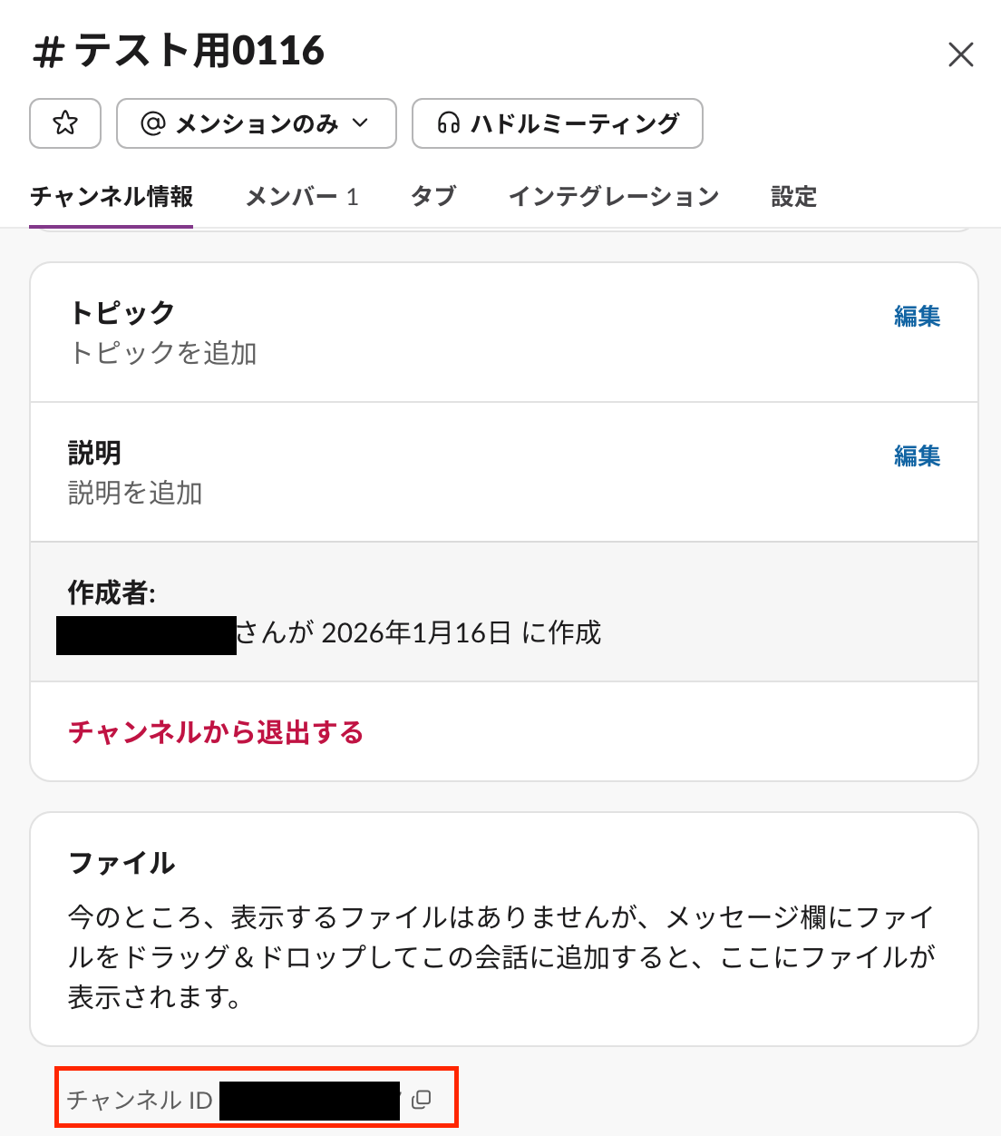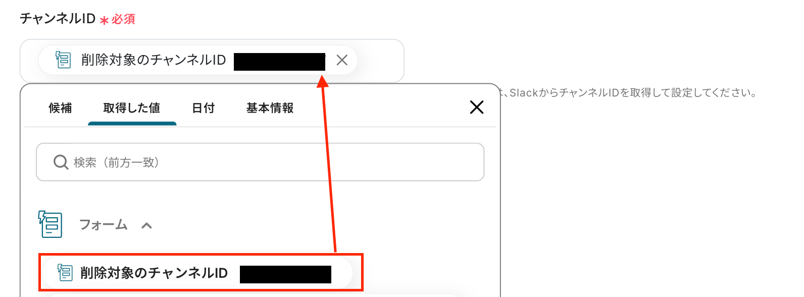 - Slackでメッセージを送るアクションを設定する際に、通知先としたいチャンネルIDを任意で設定してください