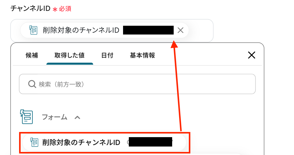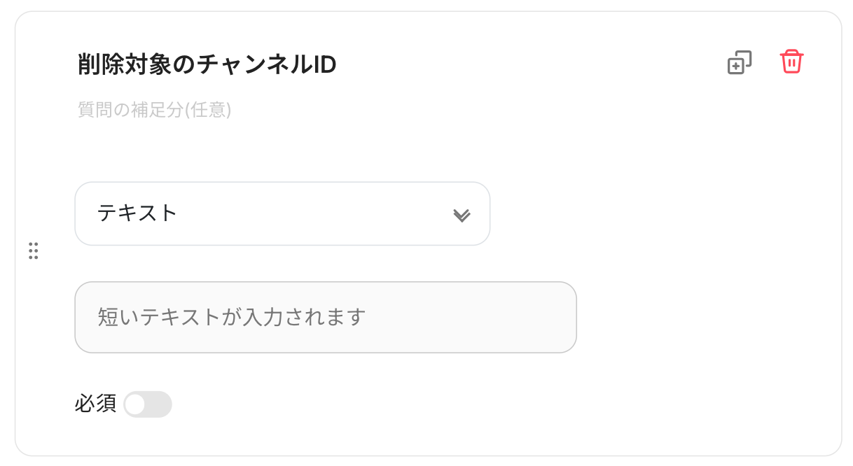 「削除対象のチャンネルID」の部分が質問項目です。
