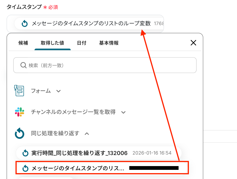 次に「取得した値」を入力しましょう!