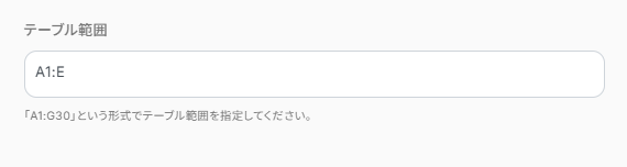 まず、スプレッドシートIDとスプレッドシートのタブ名を入力します。