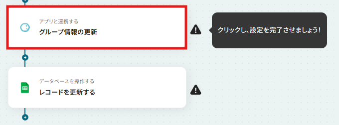 フローに戻り、「グループ情報の更新」のアイコンをクリックします。