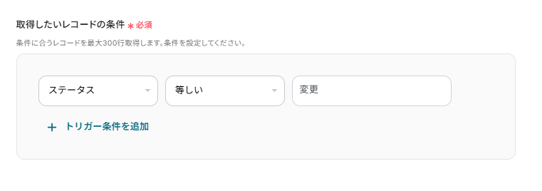 今回は、Google スプレッドシートで変更した親グループコードをコラボフローに反映することを想定し、「ステータス 等しい 変更」と設定にしました。