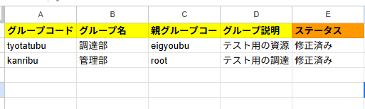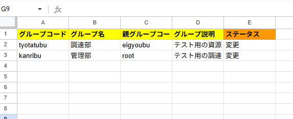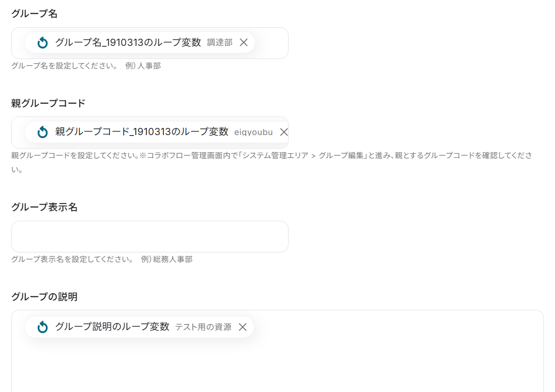 グループコードやグループ名、親グループコード、グループの説明は取得した値から設定します。