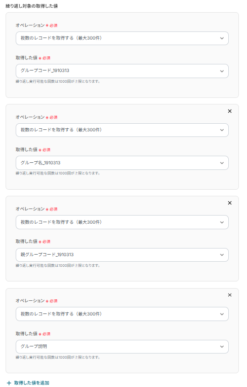 ここでは、繰り返し変更されたデータを取得したいので、以下のように設定しました。