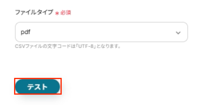 入力が完了したら「テスト」をクリックして、設定した内容でファイルがダウンロードされるか確認しましょう。