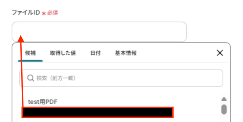 入力欄をクリックするとマイアプリ連携をしたアカウントから候補が表示されるので、対象の項目を選択しましょう。