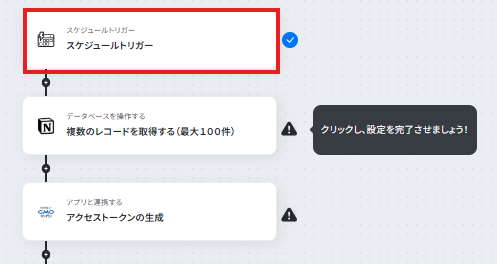 まずは「スケジュールトリガー」をクリックしてみましょう!