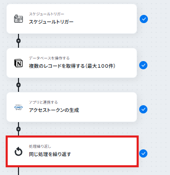 フローに戻り、「同じ処理を繰り返す」のアイコンをクリックします。