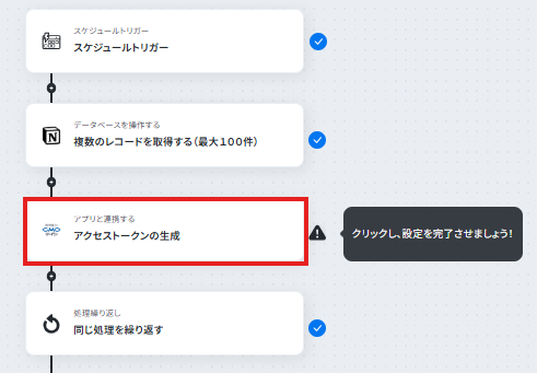 フローに戻り、「アクセストークンの生成」をクリックします。