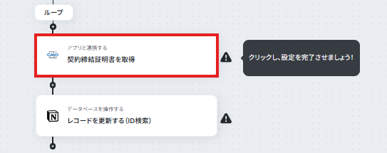 フローに戻り、「契約締結証明書を取得」をクリックします。