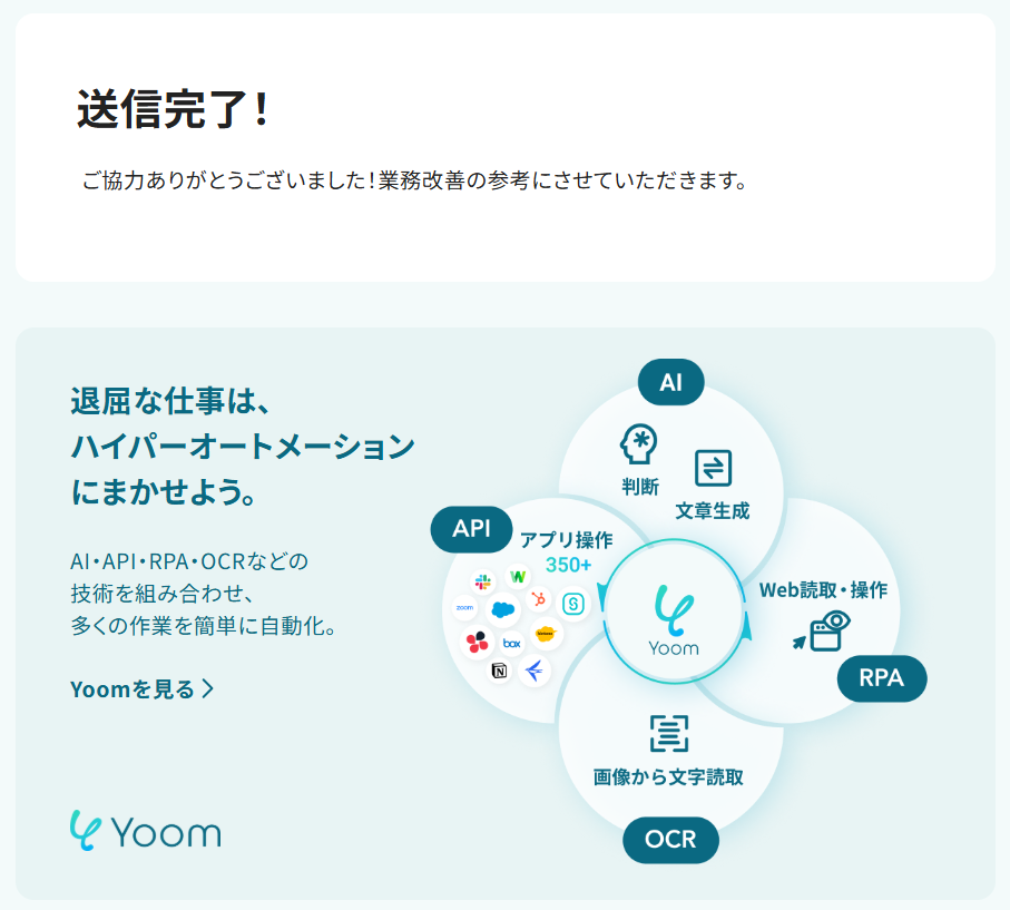 Yoomには、今回ご紹介した離職リスク分析の自動化以外にも、適性検査やアンケート結果をもとにAIが自動で分析・提案し、Slackなどのツールに通知するテンプレートも用意されています。