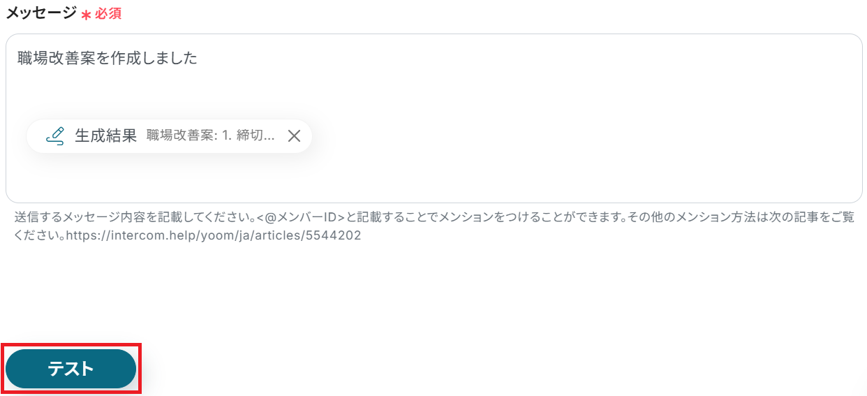 メッセージは予め設定されている通りでも大丈夫です。必要であれば編集してテストしてください。