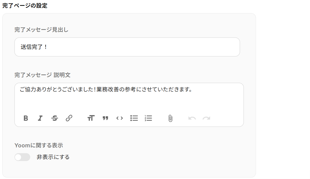 次に「プレビューページ」「完了ページ」をそれぞれクリックして表示を確認しましょう。