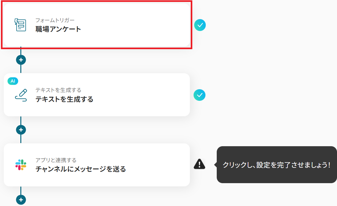 それではここから代表的な例として、フォームで収集したアンケート回答をもとに、AIが離職リスクとその防止策を分析し、結果をSlackに自動で通知するフローを解説していきます!
