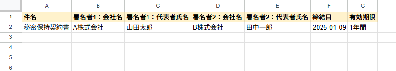 Google スプレッドシートで、締結書類の情報を記録するシートを作成しておきましょう。