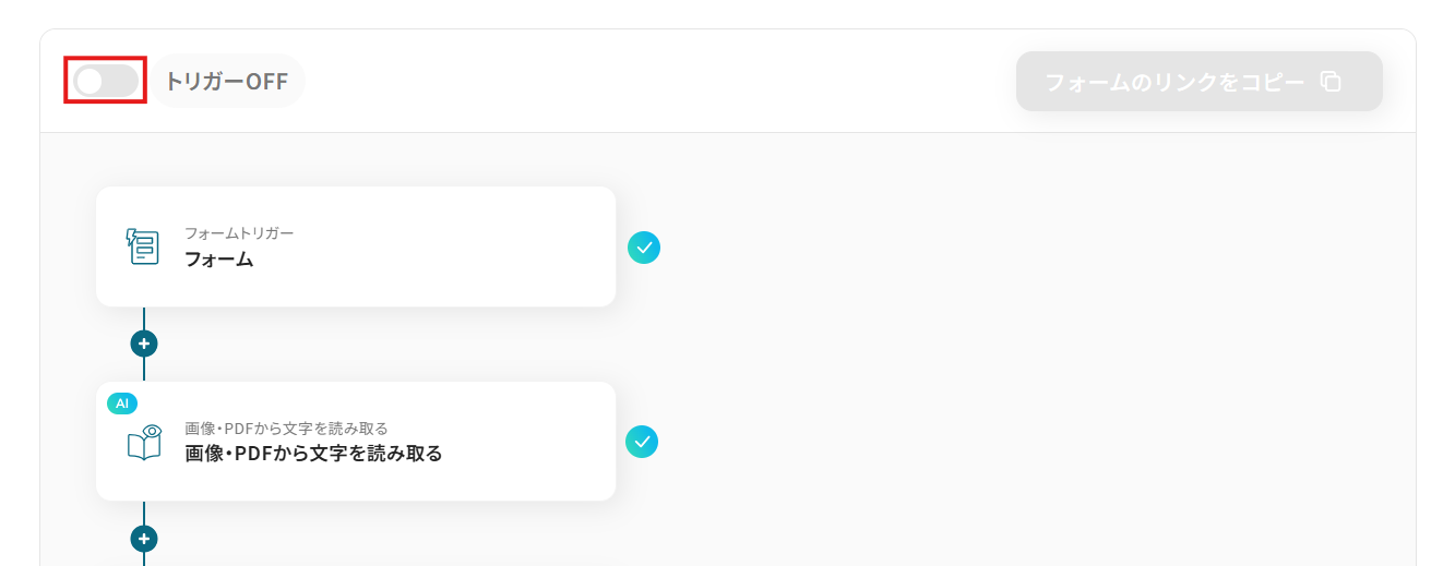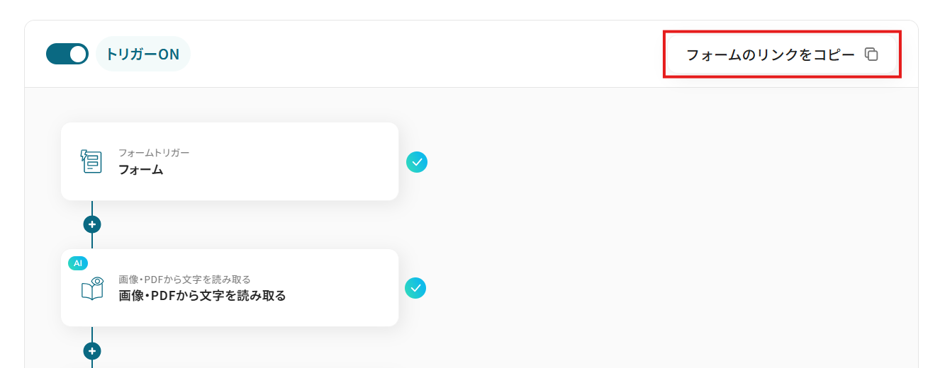 トリガーをONにすると、作成したフォームのリンクがコピーできるようになります。