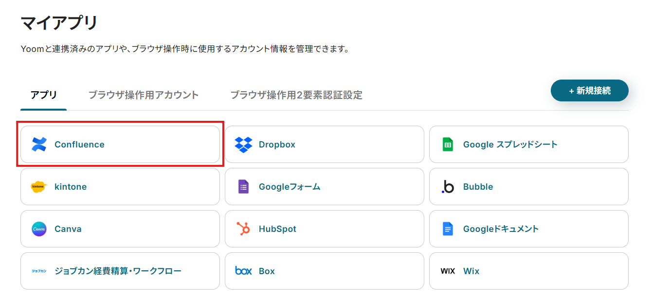 ・Dropbox、ConfluenceのそれぞれとYoomを連携してください。