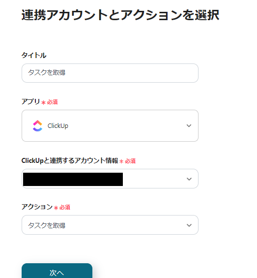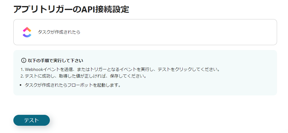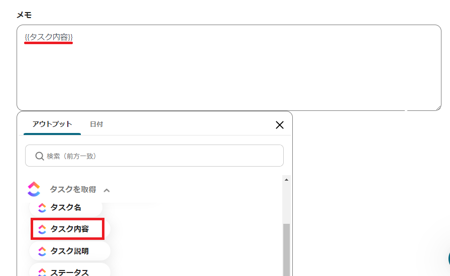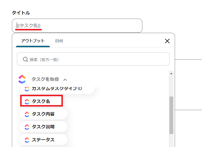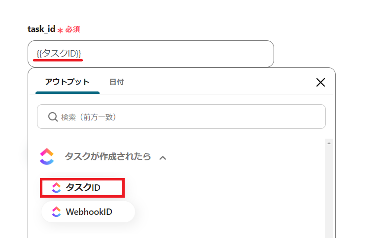 ※解説)上記画像のように設定することで、ClickUpで新しく登録されたタスクの「タスクID」を自動で取得できます。