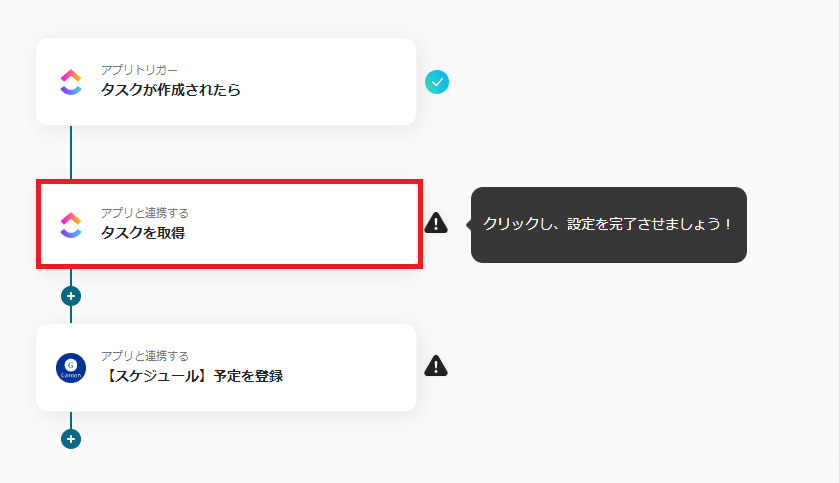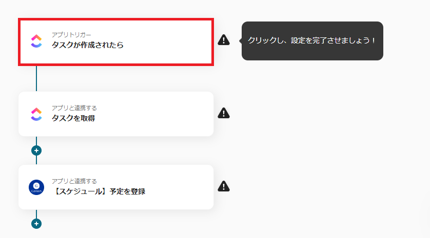 ここからは、「ClickUpで登録されたタスク情報をGaroonのカレンダーに登録する」というフローボットを編集していきましょう!
