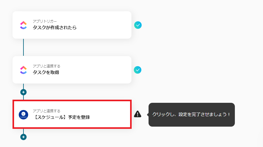 では、ここからはYoomでClickUpとGaroonを連携し、「ClickUpで登録されたタスク情報をGaroonのカレンダーに登録する」というフローボットを一緒に作成していきましょう。