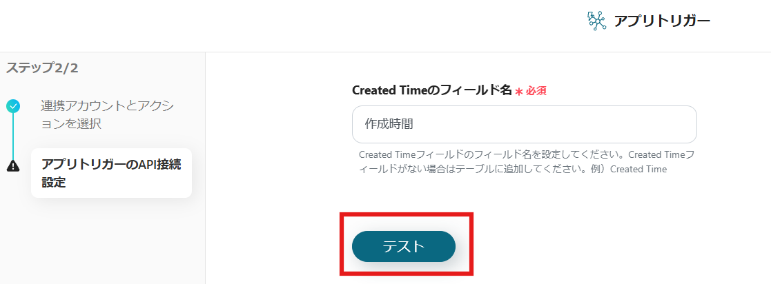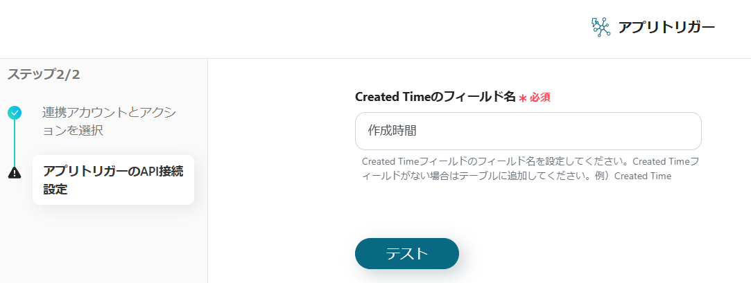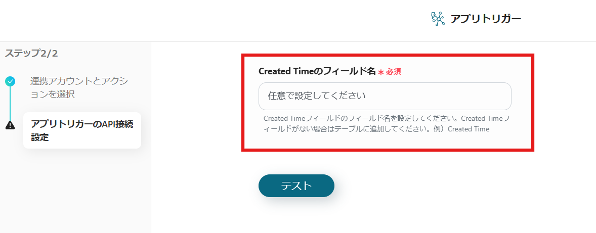 6.Created Timeのフィールド名の入力