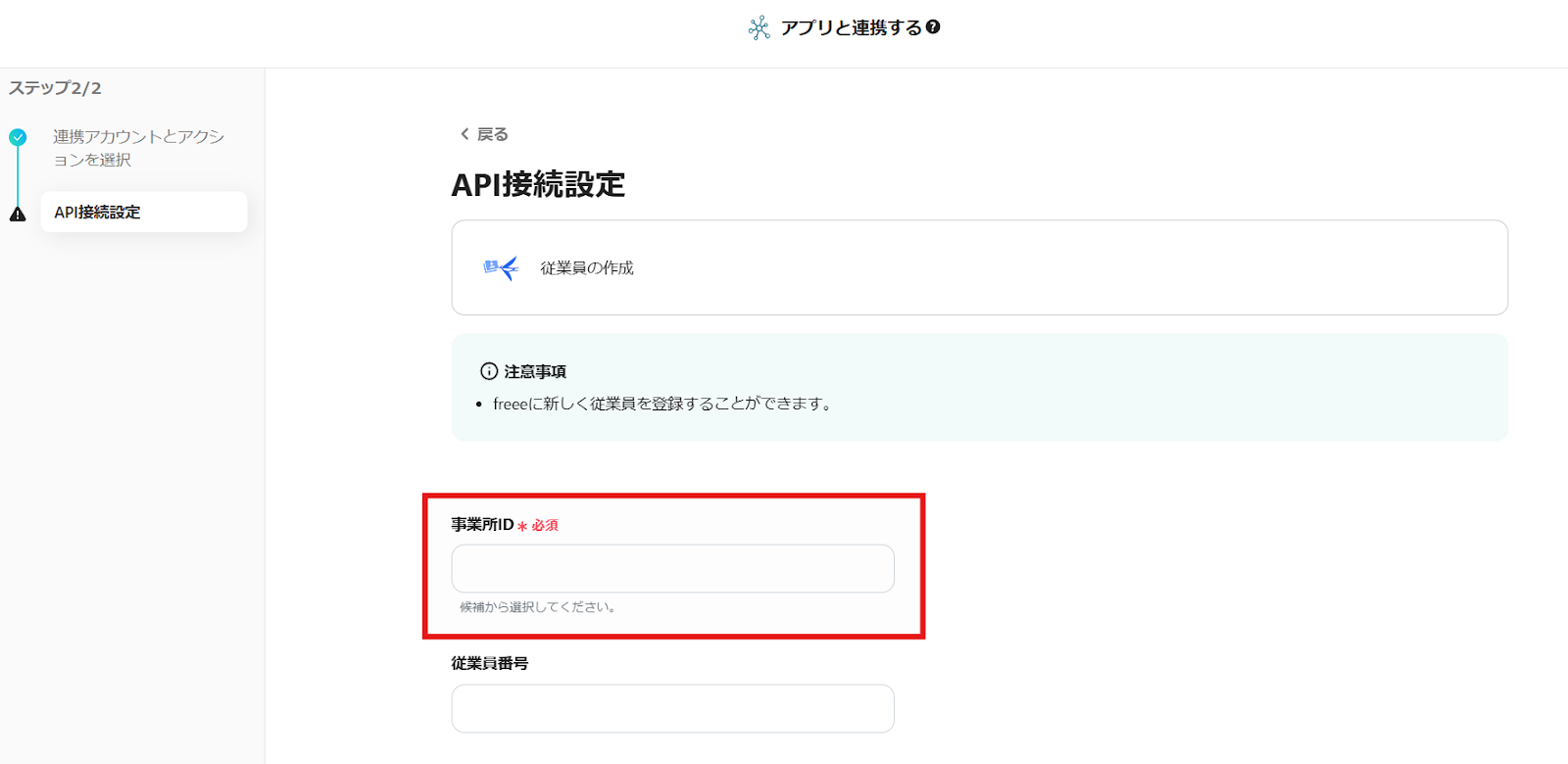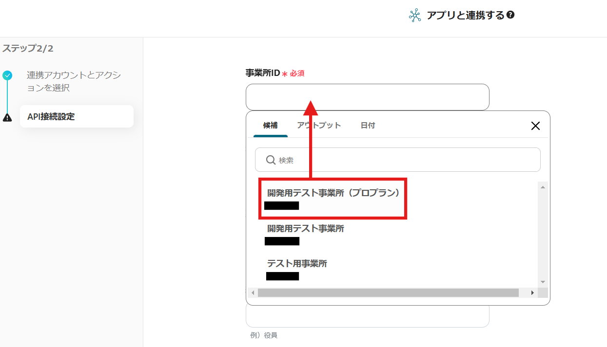 画像のように事業所IDが表示されるため、Airtableのデータを追加したいものを選択しましょう。