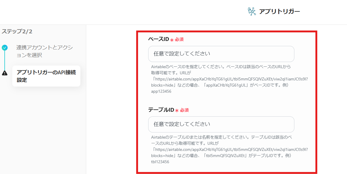 ベースIDとテーブルIDを入力します。