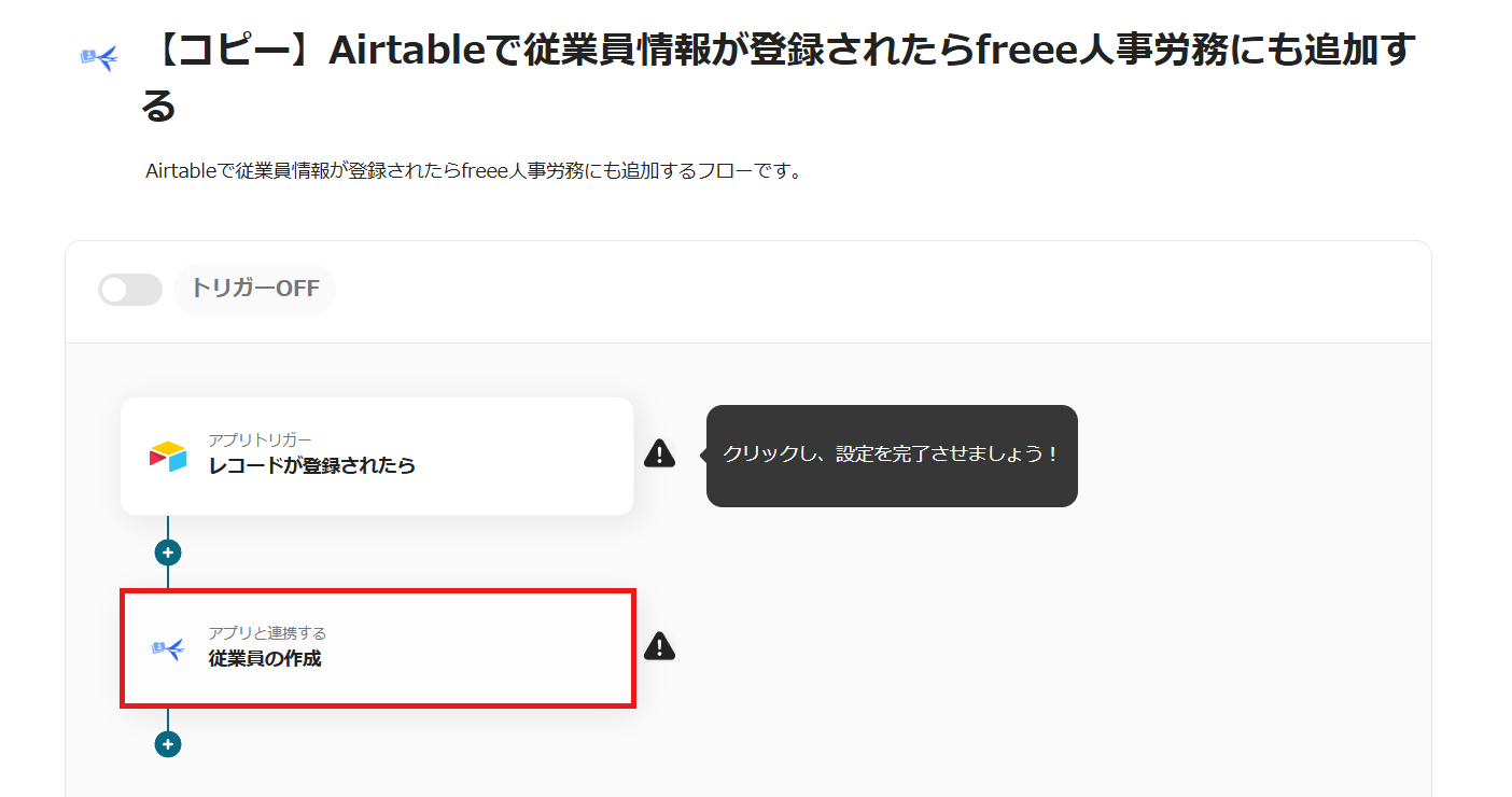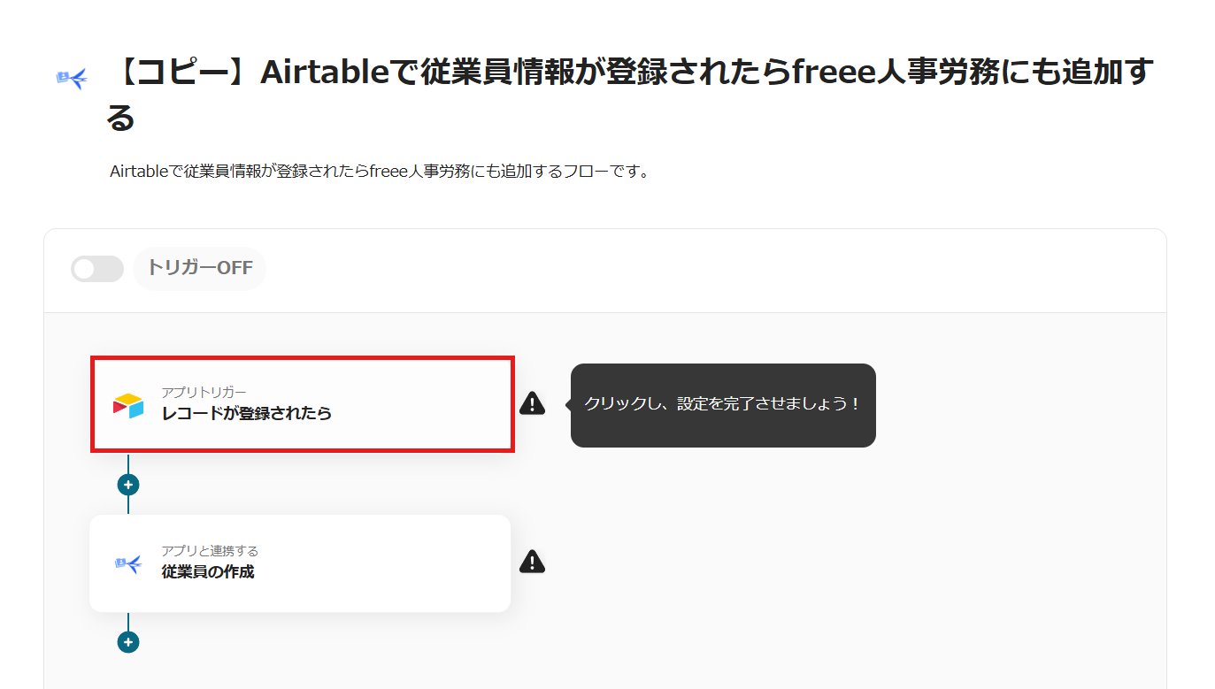 ・トリガーボタンをONにして、Airtableとfreee人事労務の連携動作を確認