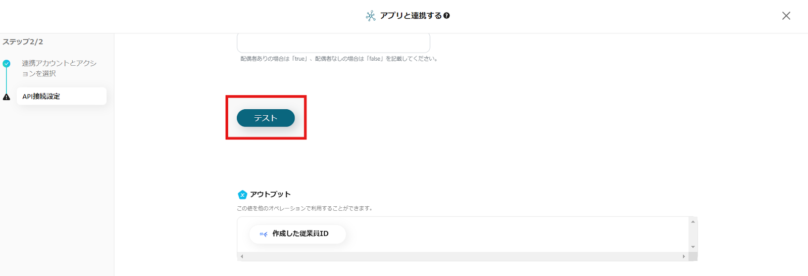 設定が完了したらテストボタンを押してください。