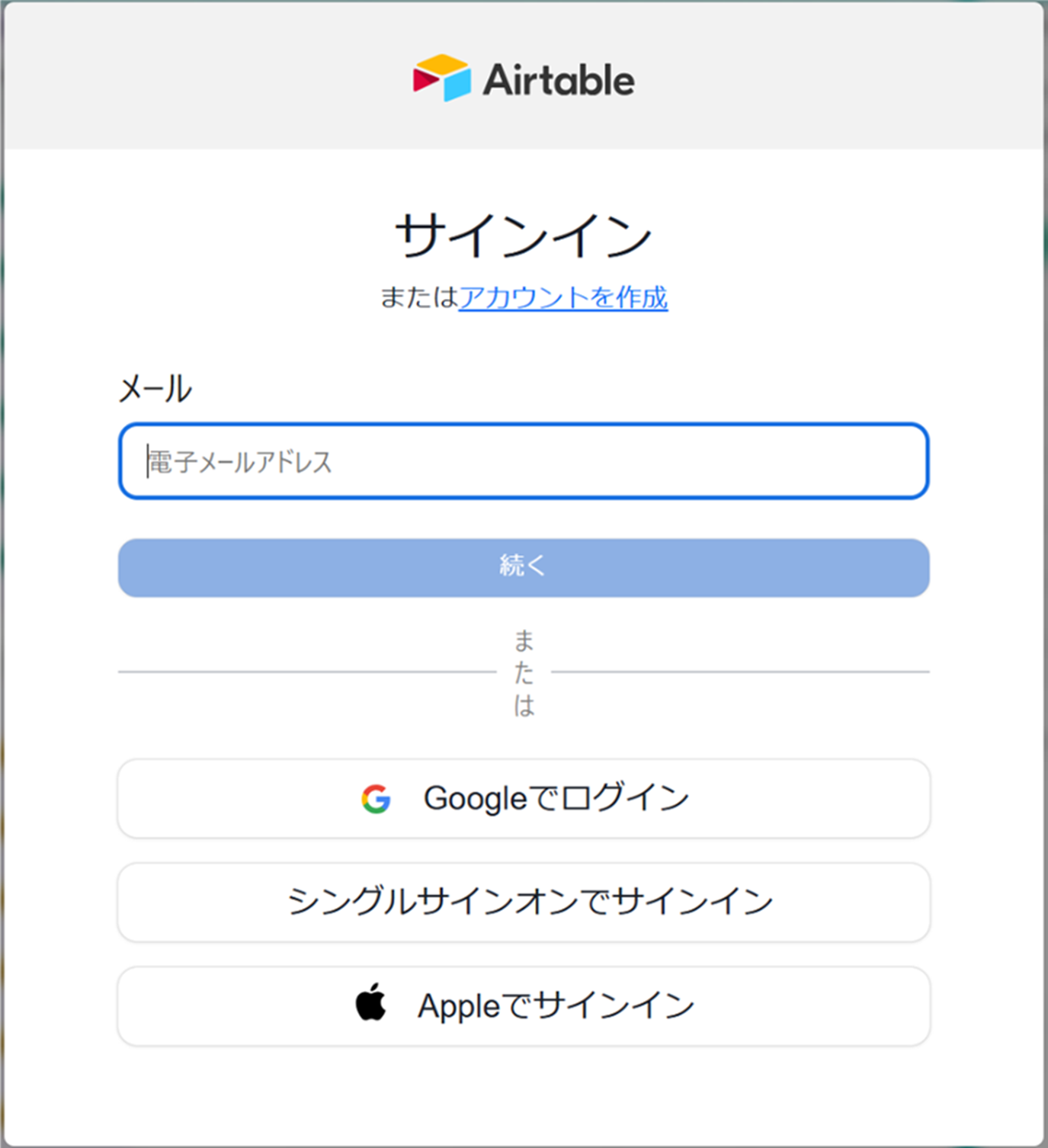 (5)Airtableのサインイン画面からお持ちのアカウントでログインを行ってください。