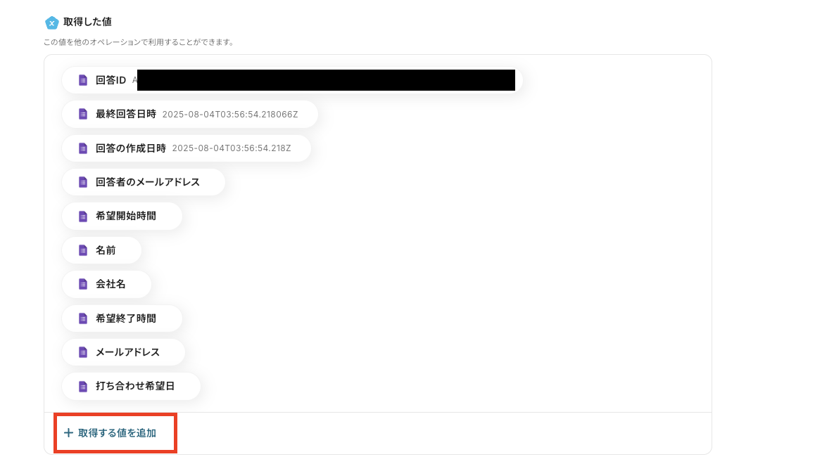 ・Googleフォームをトリガーとして使用した際の回答内容を取得する方法は下記を参照ください。