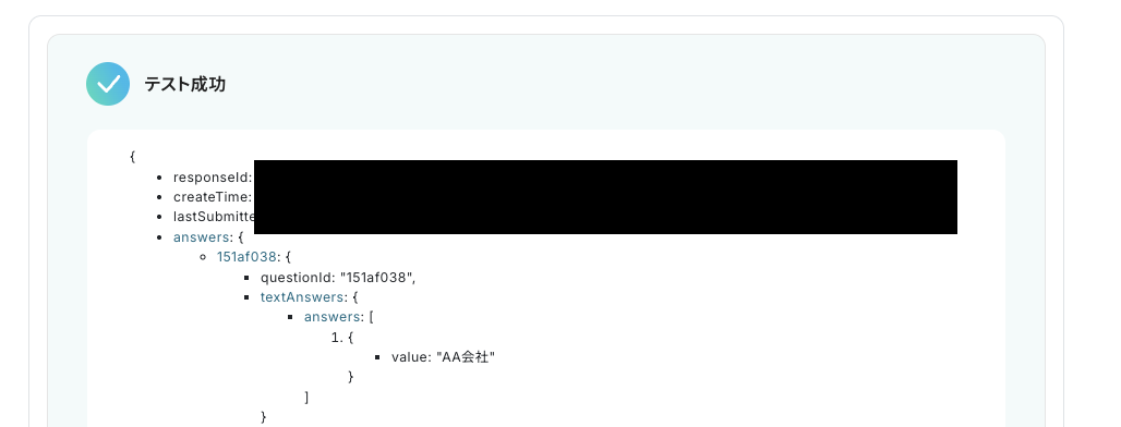 ・Googleフォームをトリガーとして使用した際の回答内容を取得する方法は下記をご参照ください。