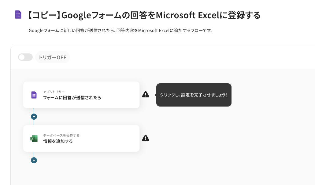 それではここから代表的な例として、Googleフォームに回答が送信された際に、その内容をMicrosoft Excelの行に自動で追加するフローを解説していきます!