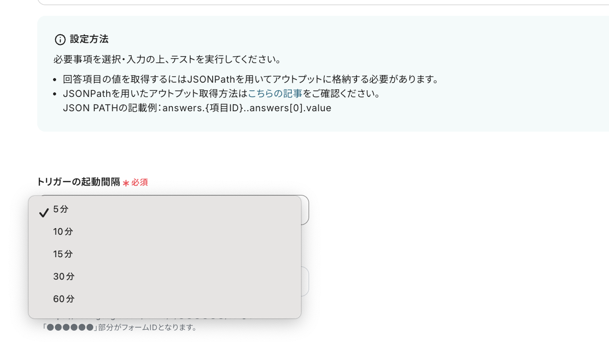 ・トリガーは5分、10分、15分、30分、60分の間隔で起動間隔を選択できます。