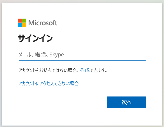 Microsoft のアカウントにサインインをしましょう。