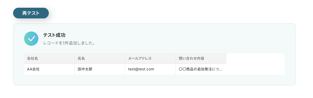 これで、Googleフォームの接続が完了しました。